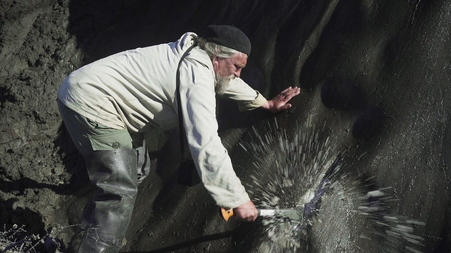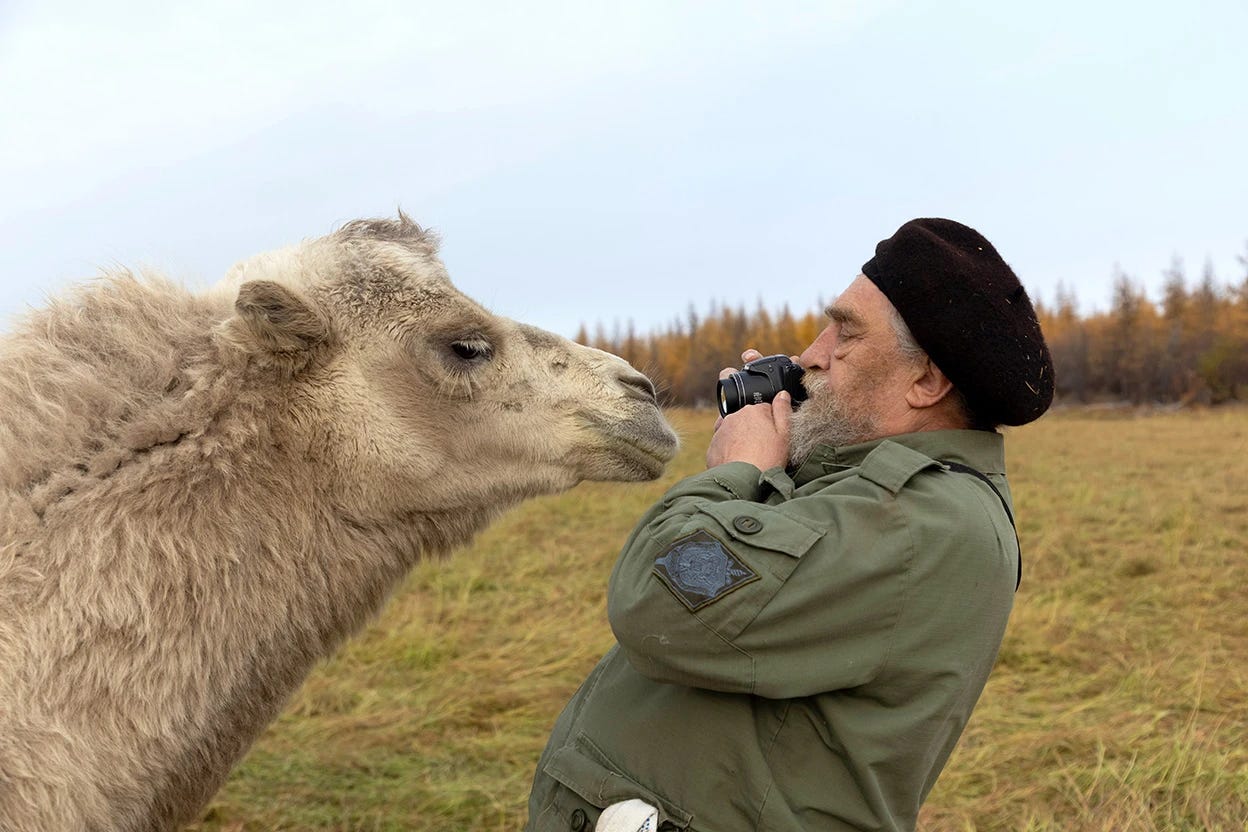 Luke’s journey to exploring this specific climate intervention strategy started in 2013, at which point in time he was working on a documentary film about Sergey Zimov, a Russian ecologist who’d spent decades trying to recreate ice age ecosystems at a place called Pleistocene Park in Siberia. “He was driving around in a tank saying ‘It is my synthetic woolly mammoth; only problem, it not make poop,’” Luke recalls. The story is irresistible: remote regions of Siberia, a mad scientist archetype, talk of woolly mammoths. Perfect documentary material.